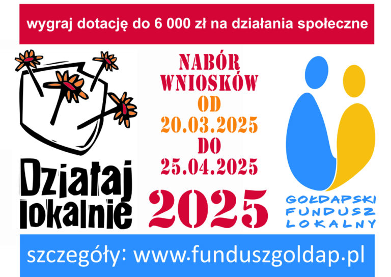 Bardzo nam miło poinformować, że przyznano dofinansowanie w ramach konkursu Działaj Lokalnie 2025 Stowarzyszenie Gołdapski Fundusz Lokalny informuję, iż decyzją Komisji Grantowej rozstrzygnięto tegoroczny konkurs grantowy w ramach programu „Działaj Lokalnie 2025”